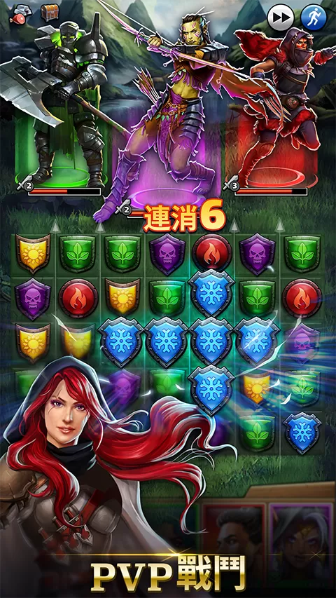 配合英雄和消除格子的技能、消耗道具的使用来达成战斗的胜利
