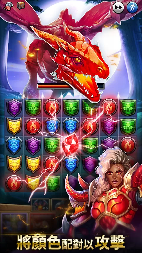 3、冒险级趣味挑战玩法,三消玩法与卡牌玩法的完美融合,指尖操作即可消除刺激的战斗。