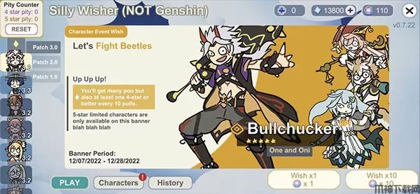 silly wisher原神抽卡模拟器iOS版是专门为苹果用户提供的版本。silly wisher是同人制作的恶搞向原神抽卡模拟器,草率的画风但是具有魔性的魅力。原神迄今为止的所有版本卡池silly wisher均已收录,且十连必得保底,抽出的角色可以在人物档案里查看。但是silly wisher不仅仅只有这些内容,它还有很多其他搞怪的功能。例如,你可以将2至四个角色进行基因转变,也就是合成一个专属于你的新角色。