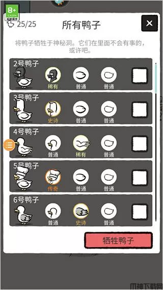 4、如果不喜欢某只鸭子,可以点击左边鸭子的图标,牺牲掉不喜欢的鸭子