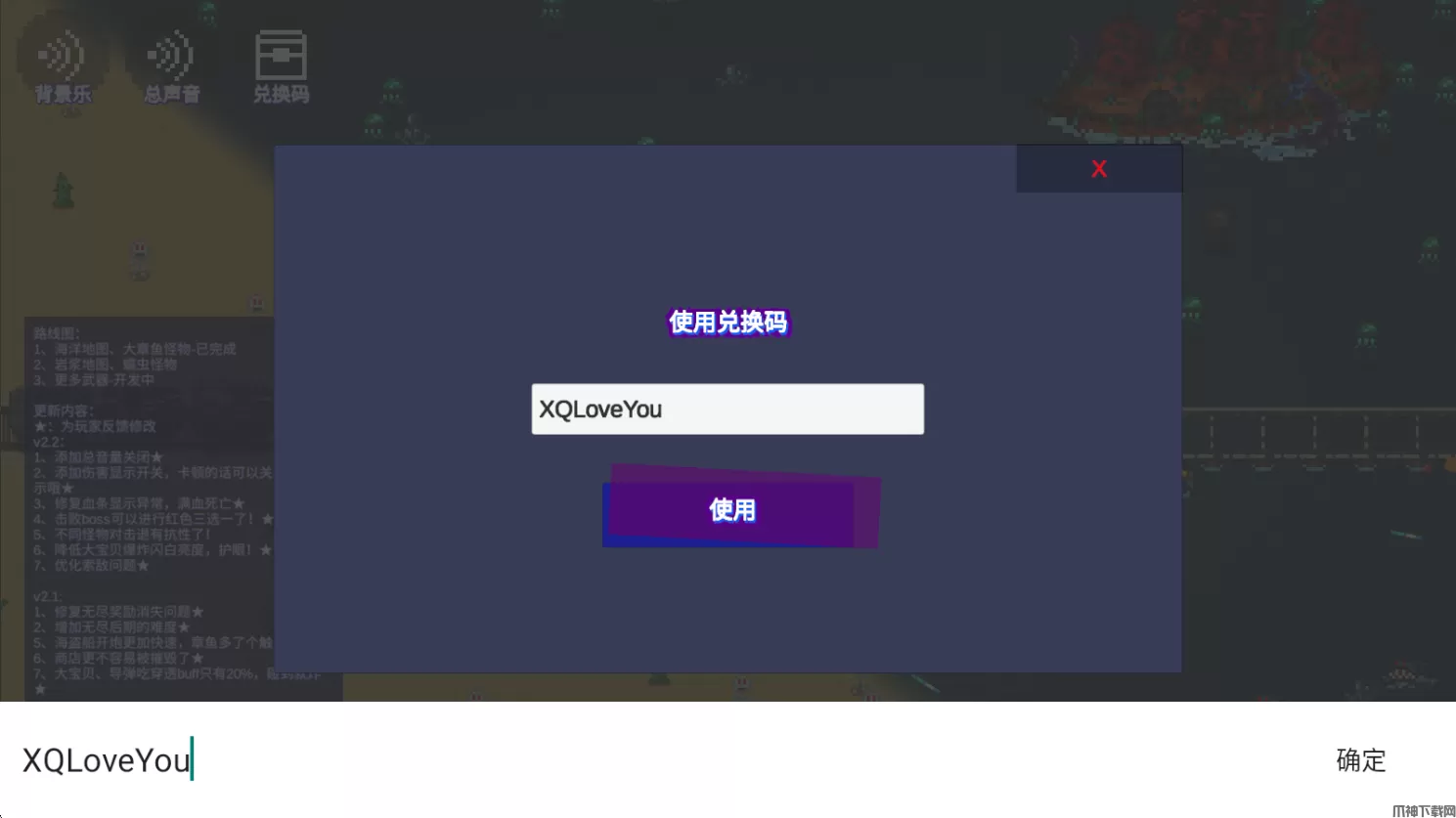 2、输入复制好的兑换码,点击使用。