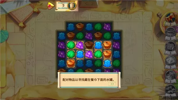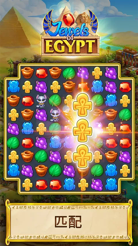 埃及的珠宝是一款三消建造类手游。进入游戏后,玩家要来到古老的埃及,为法老复兴整个文明,你将在尼罗河流域进行三消战斗,战胜一个又一个宫廷阴谋,让城市重新恢复元气。游戏采用超复古的画面以及融合了大量埃及的元素,让玩家心情舒畅。