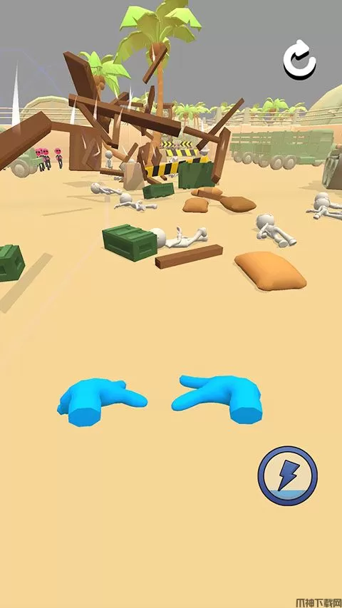 1、玩家需要控制双手来完成闯关的任务,依靠你的个人操作能够消灭对手;