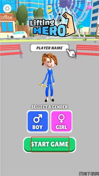 1、下载并安装本站提供的举重英雄游戏,先选择性别,点击开始;