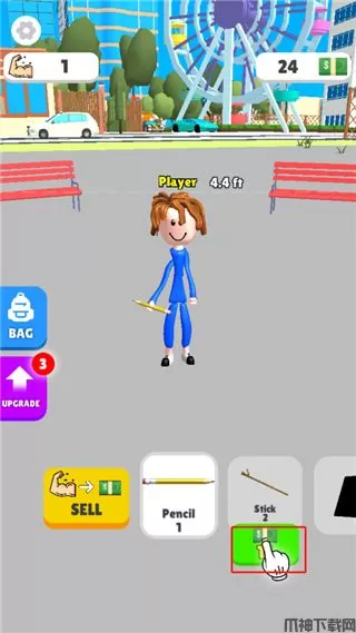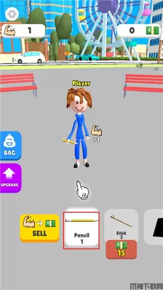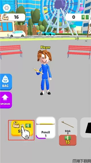 2、进入之后,角色举重的是铅笔,每次是肌肉加1;