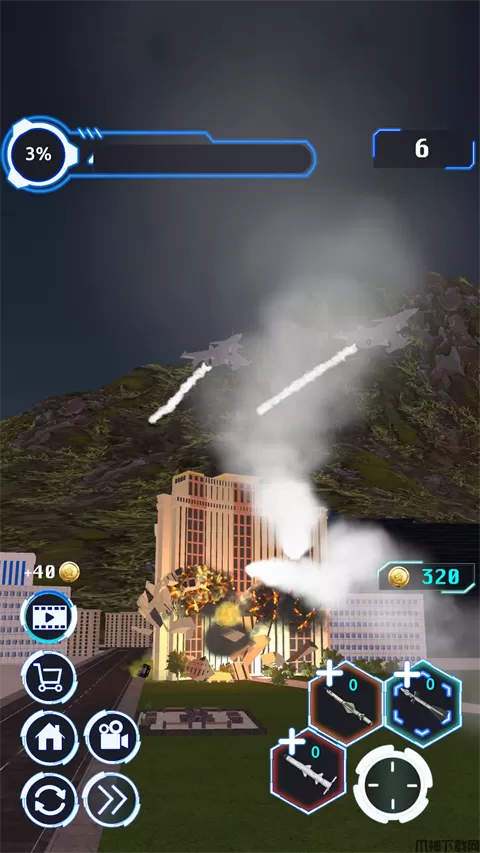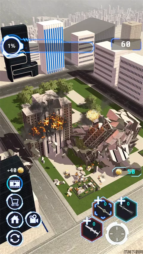 5、并且在游戏中,还可以通过点击屏幕左下角的“摄像头”来更好的观看建筑物摧毁的视角。