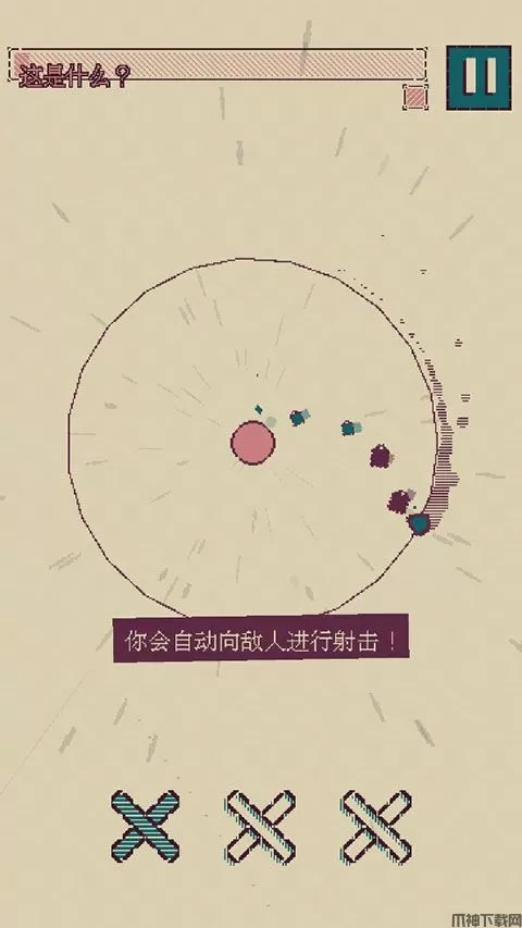 3、在成功躲避红色方块后,你会自动对敌人进行射击。