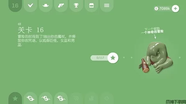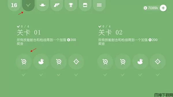 2、点左上方“√”图标来到关卡界面,每个关卡有4个小关,通关就可以获得奖励。