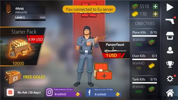 4、解锁更多的坦克和飞机来为你战斗,你也可以和好友组队来完成冒险!