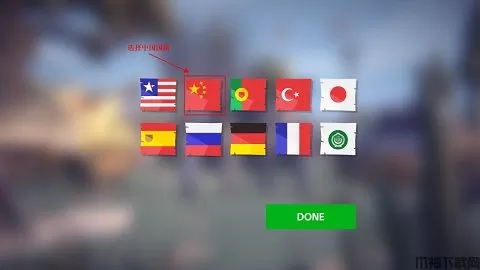 1、以游客身份开始游戏,进入游戏界面过程中,选择中国国旗,即可设置语言为中文,如图。