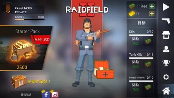 2、突袭战场2中文版是以二战为背景原型打造的射击游戏,超强物理引擎打造的3D画质呈现;