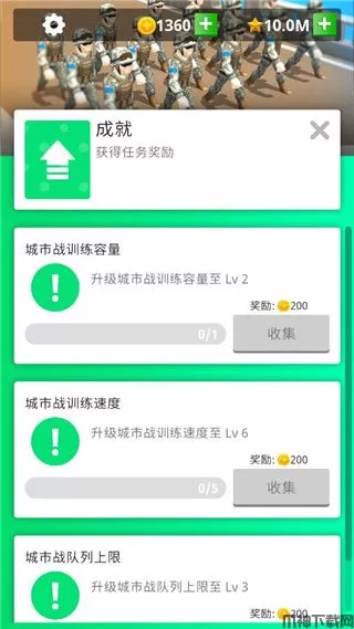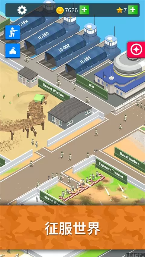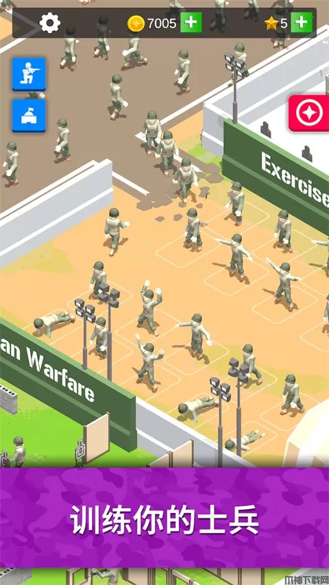 在游戏里玩家要不断的去控制和命令你的士兵去攻打一个地方,把这个地方给攻打下来,玩家在游戏里可以不断的招募一些士兵,让他们能有为你战斗,帮助你拿下重要战略位置。除此之外,在和平训练营游戏手机版中随着基地中的军事训练逐步进展,你将获得金钱并扩张营地。你可以升级所有训练区的数值、速度、容量和队列规模。虽然过程如同过山车般起伏跌宕,但懒惰的学员必将遭到淘汰——你会爱上发展和升级你的军事基地。喜欢的玩家不妨下载体验一下试试看吧!