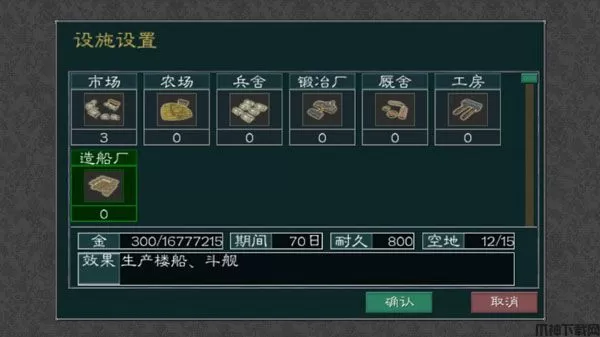 2、通过都市可进行市场、农场、兵舍、锻造厂、厩舍等设施建造,其中: