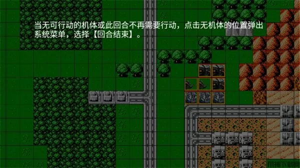 4、当无可行动的机体或此回合不再需要行动,点击无机体的位置弹出系统菜单,选择回合结束;