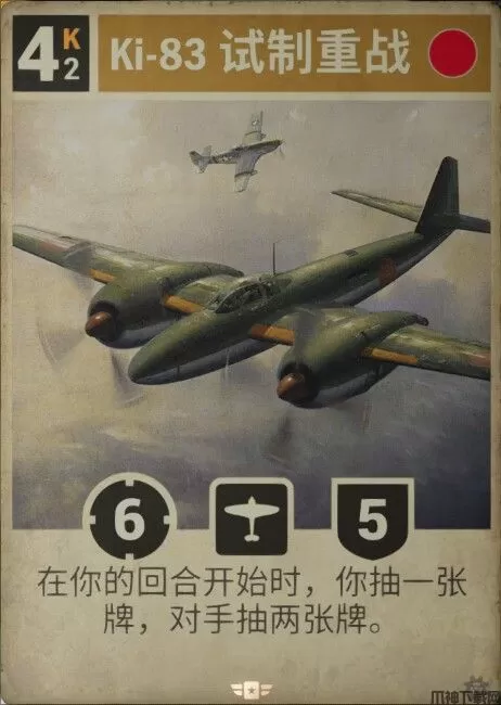 2、Ki-83 试制重战。4费6/5的身材,使得其前期按费部署时难以被对方消灭,一但对方不能及时消灭试制重战,那么它将随时给对方迎头痛击。不仅其身材强大,过牌的效果也是其强大的一部分,这也使得试制重战成为了一张日本通用金。