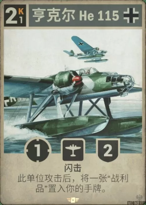 4、亨克尔 He 115。同样是一张德国通用卡,主要作用在于过牌找牌,但是优先级没前面几个那么高。