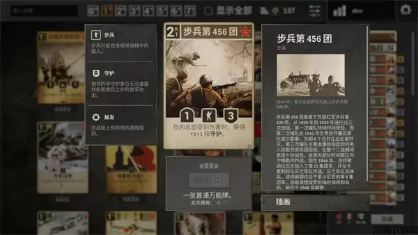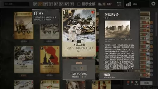 kards ios版最具标志性的就是游戏的美术,游戏中卡图参考了二战时期各国的宣传海报,进行了画风上的统一创作,这种海报油画式的卡图精准地抓住了二战的文化符号,使得游戏整体变得更加多样化和有趣。在卡片命名上,装甲部队采取了军迷耳熟能详的军备型号,而步兵则直接选取了历史上取得著名战果的部队番号。相比奇幻题材的卡牌,反而更具有一定的代入感。如果你对二战题材充满兴趣,且喜欢集换式卡牌游戏类型,那么这款游戏绝对不容错过,快来下载体验一下吧!