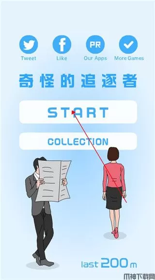 奇怪的追逐者游戏是一款画风简单有趣的休闲类小游戏,这款游戏在玩法上真的非常简单,玩家只需要扮演在游戏中扮演男性角色跟踪女性角色,保证自己不被发现,在女性角色回头时男性角色还扮演成各种东西,比如树,桌子等等,只要跟踪两百米不被发现玩家就取得了