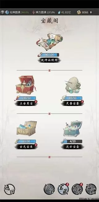 无论你是升级了神通、还是鉴定了灵兽,都能领取到“天机石”和“宝藏阁的碎片”。而这两个物品都可在宝藏阁兑换到稀有的秘药、古宝以及藏宝图等十分难得的宝贝。