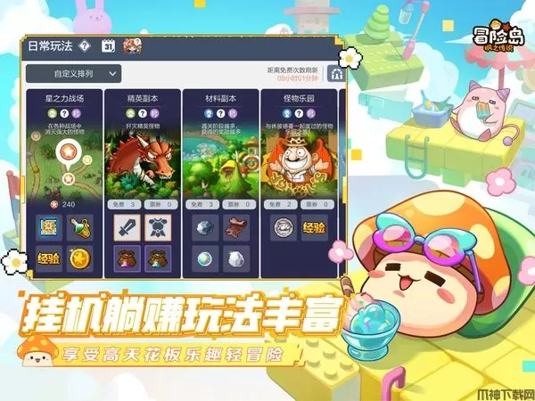 此外冒险岛枫之传说相对端游《冒险岛》也有了一些改变,特有的挂机功能可以解放双手,让成长更加简单,给予岛民轻松的养成体验,而且不强制社交,无社交压力,玩家可在这个和谐融洽的氛围里尽情展示自己。不仅如此,冒险岛枫之传说哈提供了海量服装与造型以及有40+职业储备等让玩家们可以自在搭配,同时游戏内更是支持多角色养成,让一个账号下就可以畅快体验不同职业的丰富乐趣,从而体验到冒险岛枫之传说的无穷魅力。