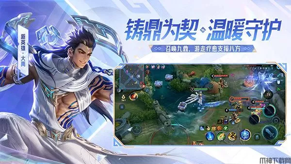 1. 新英雄-大禹:大禹原为来自倒悬天的神职者,却被归山一族的勇敢不屈所触动,决定留在建木。自此,归山一族多了一位与族人共担风雨的首领。作为辅助职业的大禹可召唤九鼎,在各鼎间灵活传送、快速支援队友,同时也拥有着不俗的疗愈能力,有他在,团战更从容。