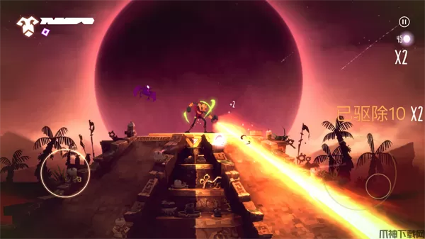 4、角色射出的光线对低等级的杂兵具有穿透能力,一次能消灭多个敌人,但中后期出现的高级敌人能够阻挡光线,对付起来要麻烦一些,这时候最好用咒术攻击辅助消灭靠近的敌人,否则很容因为受伤而导致连击中断,从而影响获得的分数。