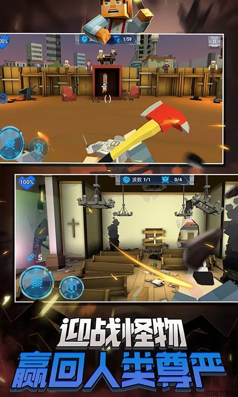 蹦跶小怪兽官方最新版是一款像素僵尸射击游戏。在游戏中玩家将化身一名枪手射杀僵尸拯救世界,游戏里有海量的关卡,每一关都有数波的僵尸,消灭完所有的僵尸才算胜利通关,但是也要注意躲避僵尸的攻击,否则被攻击到会不断的被扣血,扣血完毕即算闯关失败,所以很考验玩家的射击技巧和走位技巧。另一方面,游戏里还有各种强大的枪支可以解锁,玩家可以用通关获得的金币购买,有了这些强劲的枪支从而可以更好的帮助玩家击杀僵尸通关。最后,蹦跶小怪兽游戏拥有像素风格的画风,精良的建模,还有逼真的射击声效,配合令人紧张刺激的音乐,可以让玩家体验到射击僵尸所带来的快乐。