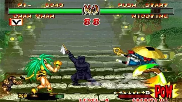 游戏《侍魂2》的玩法也跟游戏机上一模一样,在游戏左下角玩家通过操作摇杆来控制人物动作,右下角设置有4个按键,分别控制拳,脚,放宝和暴气。简洁的按键操作可以让玩家在游戏中更加直接方便地体验到格斗的乐趣。