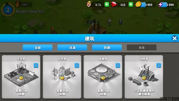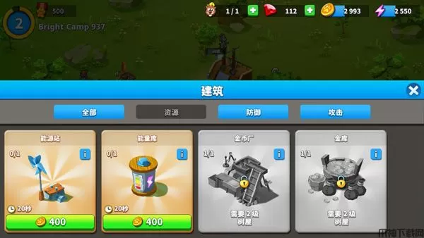 2、英雄馆、水塔、能源站等各种设施都有着其需要的用处,在有必要的时刻提升等级