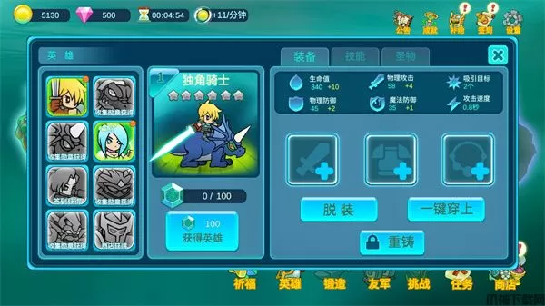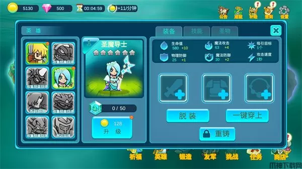 圣魔导士(初始英雄,有治疗,万金油基本大部分关卡都能常驻,远程法术伤害,30级后可以被动治疗其他英雄)