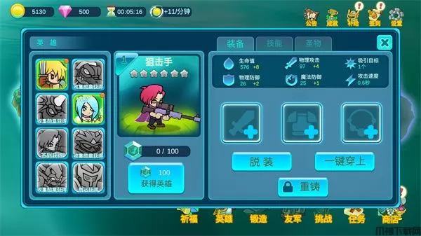 狙击手(第二天签到赠送,攻击高手长可以打飞行怪,手榴弹距离太近很鸡肋都炸不到人,大招也很尴尬,不过当做远程平A怪也还是可以用)