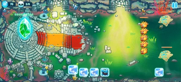 水晶战争2就跟大多数的塔防游戏类似,在每一次的挑战,玩家可以通过消灭敌人来赚取用以升级的金币以及积攒能够释放强力技能的能量值。在游戏中,玩家既能召唤出多种多样、能力强大的英雄单位,也能召唤援兵大军来帮助你筑起强大的防守针线。