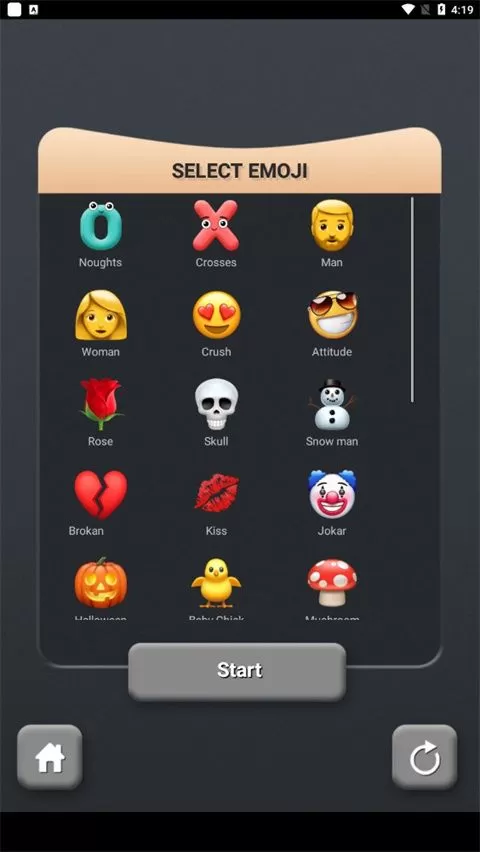 2、然后选择你要的emoji,然后点击start开始游戏;