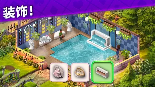 8、解决令人轻松愉悦的三峰纸牌谜题,展示你那令人惊叹的装修技艺,改造庄园的花园、大厅、卧室、书房以及更多场景!成千上万种设计选项和风格让你随心所欲地搭配出你心目中的梦想庄园!