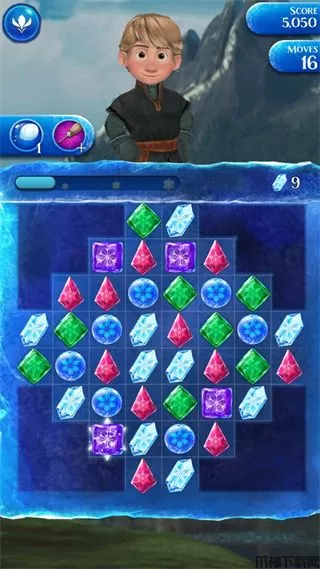 7、专为每位角色量身打造的强化道具 - 你可以运用安娜的「火把」将整排冰晶烧尽,或是用爱莎的「冰河」强化道具让颜色相同的所有冰晶神奇地消失!你可以试试汉斯的「长剑」将多颗冰晶直接砍除,还有更多更酷的强化道具等你发现!