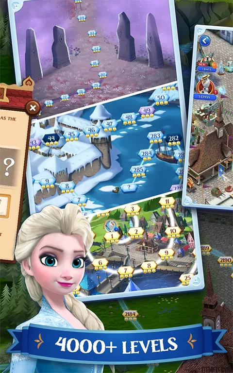 1、体验迪士尼排名第一的益智游戏《冰雪奇缘:冰纷乐》,挑战超过 1,000 道刺激关卡!