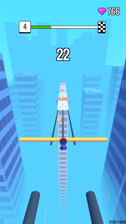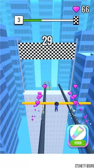 屋顶棍棍侠最新版(Roof Rails)是一款魔性动作跑酷游戏。游戏中,你将扮演一位可爱的火柴人,手持一根伸缩自如的长棍,在城市屋顶上展开一场惊险又有趣的跑酷冒险。屋顶棍棍侠玩法非常简单,通过左右滑动屏幕来控制角色,利用手中的长棍在轨道上滑行。你需要沿途收集木块来不断加长你的棍子,同时也要灵活躲避妄图将其锯断的各种机关。抵达关卡终点时,棍子越长,你就能滑得越远,从而获得越高的倍数奖励,并解锁各种搞笑的角色皮肤和长棍外观。