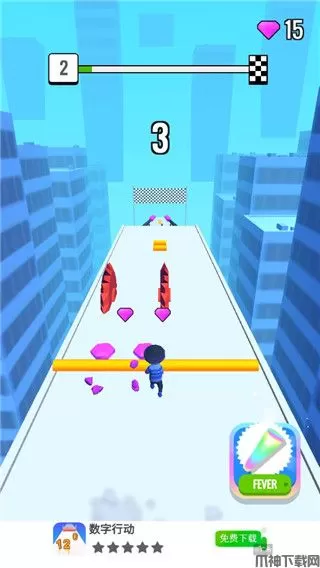 2、在前行的过程中你要不断的使你的木棍变长,穿越重重关卡,以此达到终点;