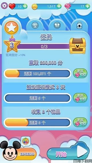 10、每天出来普通任务外还可以达到5级后可以进行每日挑战。如果你每一次玩的分数越高,就会进入排行榜。每周更新一次。不过你每一次玩一次就会消耗体力,体力就是红心。在纪念品中每完成一次都有不同奖励,如金币,宝箱等。