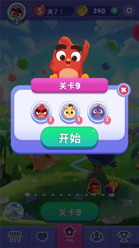 1、在本站下载安装并打开愤怒的小鸟梦幻爆破游戏,玩家进入游戏是需要以闯关的形式来逐步通过,玩家点击开始即可进入游戏。