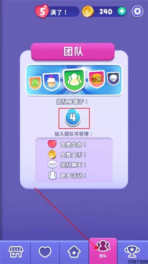 5、当玩家的等级达到四级是就可以加入团队啦。