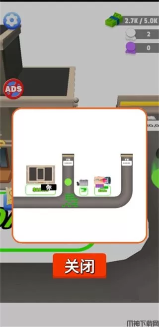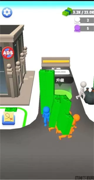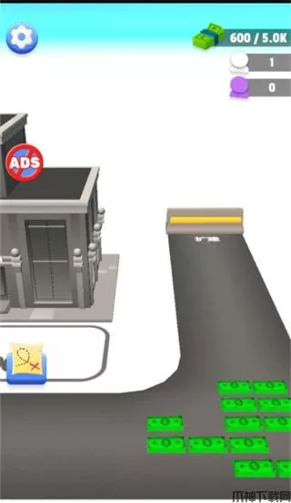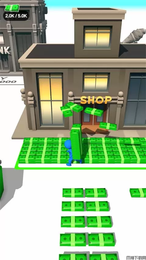1、在这里玩家的任务就是不断挣钱,搬运钞票来扩展区域。