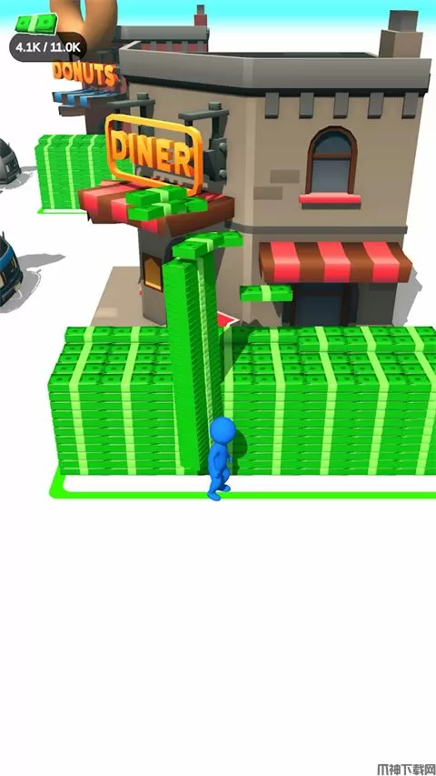 金钱乐园官方版(Moneyland)是一款非常有趣的休闲建造类游戏,在美术风格上面采用了经典的火柴人造型,在游戏中玩家将背负现金开始建造城市,翠绿的现金背在身后矗立起高墙的样子还是很令人震撼的,毕竟几个人高的现金不论摆放在什么地方都是会让人感到惊讶的。在游戏的过程中玩家可以将收集的现金用来购买商店、银行、工厂、餐厅等商业设施,收取商业设施的租金赚取更加丰厚的收益,最终成为这座城市的主人。从现金收集到设施的购买,从租金的收取到新区域的开启,每一个操作都需要玩家亲历亲为,进行到后期用户就可以雇佣人工,提升城市的繁华程度,让原本寂静的城市喧嚣起来。