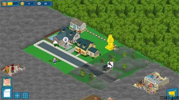1、恶搞之家游戏按照动画原本的故事情节发展,其玩法偏向于模拟养成类,一如既往地无厘头风格,一开场就是火鸡大战彼得·格里芬。经过了惊天动地的激战之后,从玩家点击救起彼得的那一刻起,游戏才真正开始;
