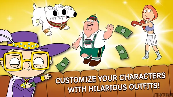 3、游戏过程中,玩家还可以解锁很多有趣的服装为你的角色打扮一番,像美人鱼彼得,身穿比基尼的Quagmire,兰博版洛伊丝等;
