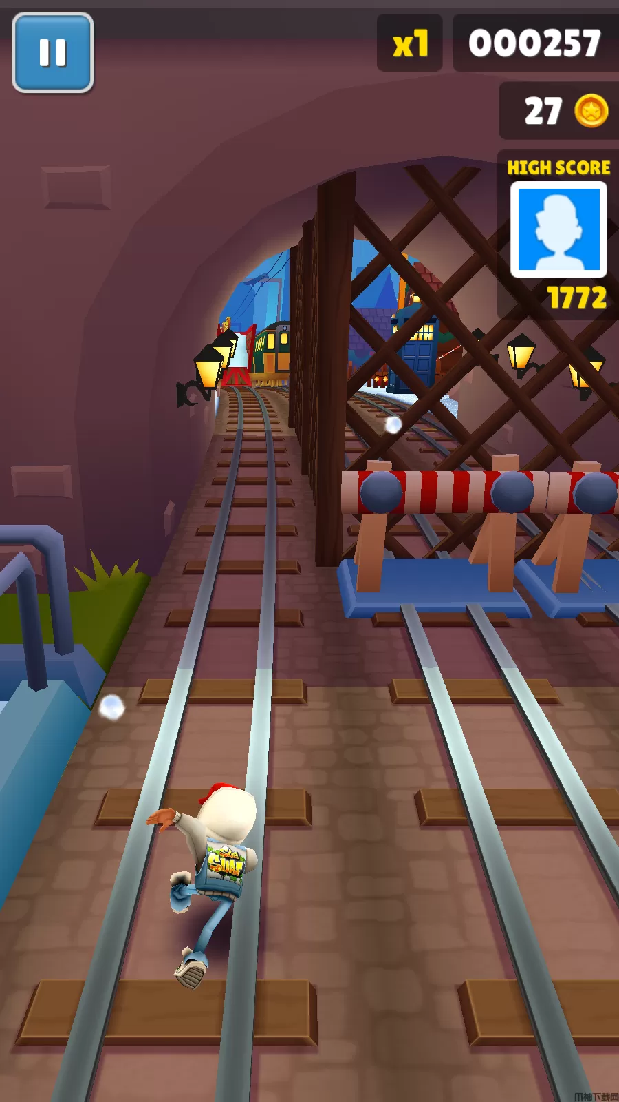 有地铁也会有山洞,中间有一根柱子,左右两边无规律会有火车奔过来,这个时候就要考验玩家的应变能力。