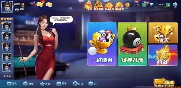 网络台球游戏是一款十分好玩的桌球手游。游戏采用了真实的物理引擎,玩家在这里打球可以感受到真实的物理轨迹,给你带来超乎你的想象的台球体验。台球有着非常多的游戏玩法,而该游戏集合了多种台球模式,在这里不管是一杆清台还是经典八球玩法都有,甚至你想要约战好友也没问题,并且还提供了大量的游戏关卡,玩家可以自己没事的时候玩玩,让你在这里找到打球的乐趣。除了网络台球游戏玩法之外,这里还有超多现实中的台球技巧,很多现实中玩家难以打出的操作都可以在游戏中实现,更有大量台球明星手把手教学,亲自指导,让您与真正的台球王者一决高下。喜欢打台球的玩家赶紧来本站下载游戏体验一下吧
