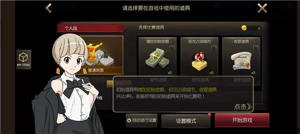3、在进入游戏前先选择三种道具,这对于游戏获取胜利至关重要