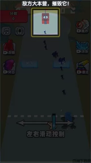 3、其中数越大,产生的士兵越多,对面便是敌方大本营,通过左右滑动控制,增加士兵数量,依靠数量的优势催他敌方大本营。