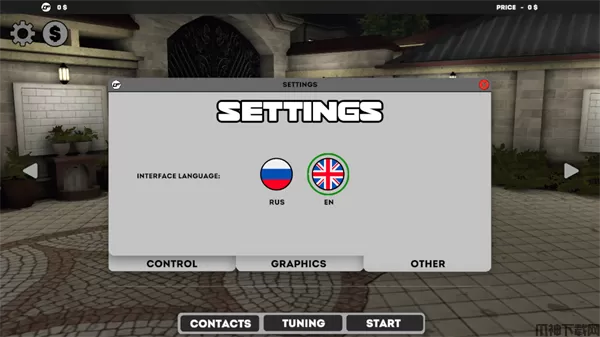 1、在本站下载并安装高加索停车场最新版后,进入游戏选择语言,游戏共提供了俄语和英语两种语言供玩家选择,暂时不支持中文